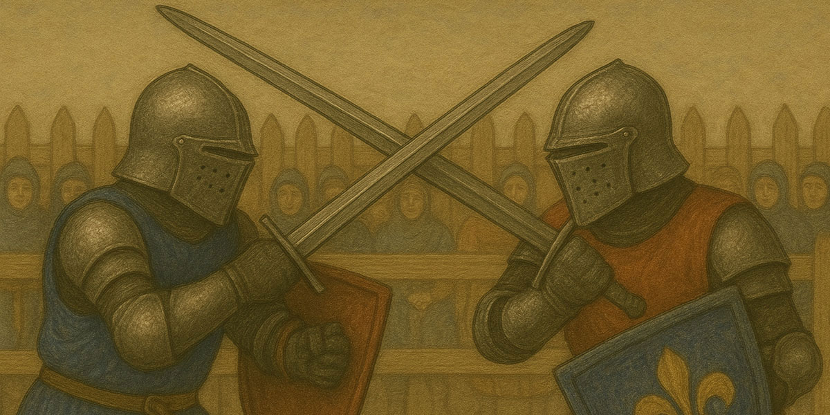 Turniej pieszy był jedną z najbardziej intensywnych, technicznych i widowiskowych form rycerskiej rywalizacji. Choć w kulturze masowej turnieje kojarzą się przede wszystkim z pojedynkami konnymi, to właśnie walki piesze stanowiły prawdziwy pokaz umiejętności fizycznych i technicznych rycerza. Były esencją fechtunku — nauki walki białą bronią — i wymagały od uczestników nie tylko siły, lecz także wytrzymałości, refleksu, znajomości taktyki oraz głębokiego zrozumienia struktury zbroi przeciwnika. W przeciwieństwie do joustu, w którym często decydowało jedno perfekcyjne uderzenie kopią, w turniejach pieszych triumfowała zdolność długotrwałej walki, kontrolowania dystansu, reagowania na działania rywala i wykorzystywania chwilowych przewag.