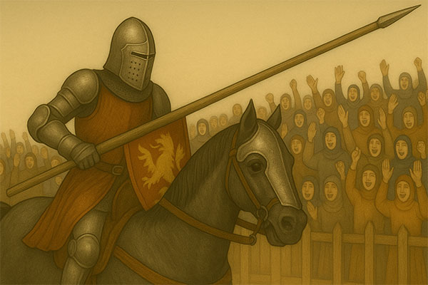 Turniej konny, powszechnie znany jako joust, jest dziś najbardziej rozpoznawalnym symbolem kultury rycerskiej. To właśnie dwaj rycerze galopujący naprzeciw siebie z opuszczonymi kopiami utrwalili się w wyobraźni zbiorowej jako kwintesencja średniowiecznego ideału honoru, odwagi i szlachetnej walki. Chociaż turnieje przybierały różne formy, joust zajmował wśród nich miejsce szczególne — był jednocześnie sportem, widowiskiem, aktem politycznym i rytuałem, w którym łączyły się tradycje wojskowe, symbolika feudalna oraz kultura dworska.